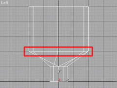 | Now we are going to create the shapes that will form the pan. Go to the top view. We are now going to create a line with 4 segments. Draw the line going from top to bottom so that is similiar to the one in the image on the right. Name this line Poly03. |