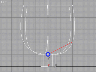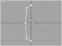 | Now we are going to create the shapes that will form the pan. Go to the top view. We are now going to create a line with 4 segments. Draw the line going from top to bottom so that is similiar to the one in the image on the right. Name this line Poly03. |